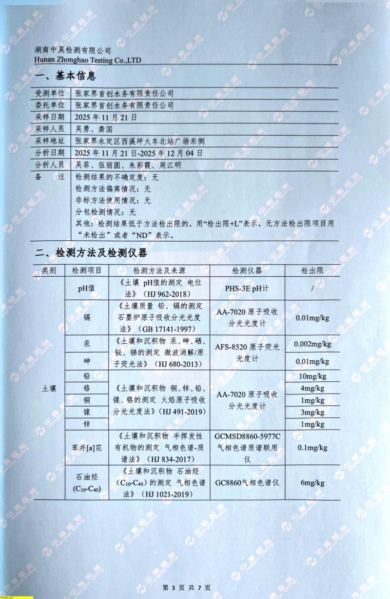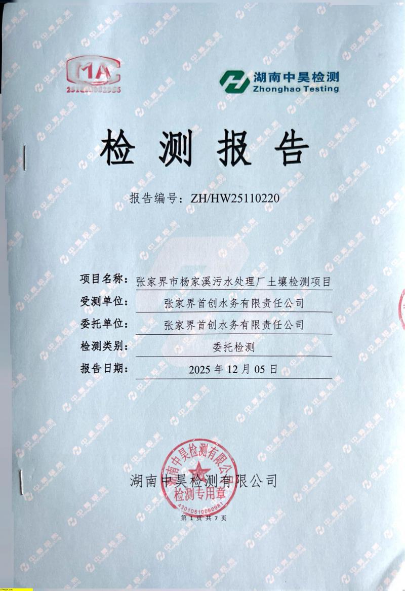 张家界首创杨家溪污水处理厂2025年土壤检测数据公示
